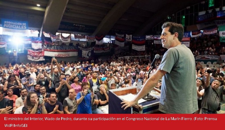 La Plata, 19 Mar (Por InfoGEI).-El titular de la cartera de Interior lo expresó este sábado, al brindar un discurso en el microestadio de Ferro, en el marco del Primer Congreso Nacional de la Corriente Martín Fierro, en ocasión del vigésimo aniversario de la agrupación que integra el FdT.